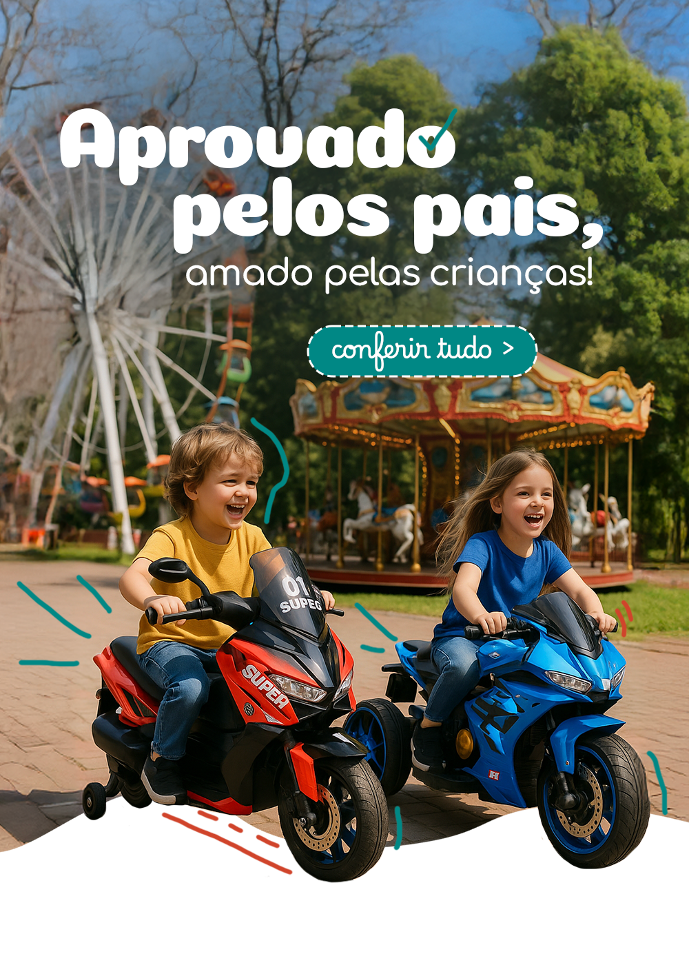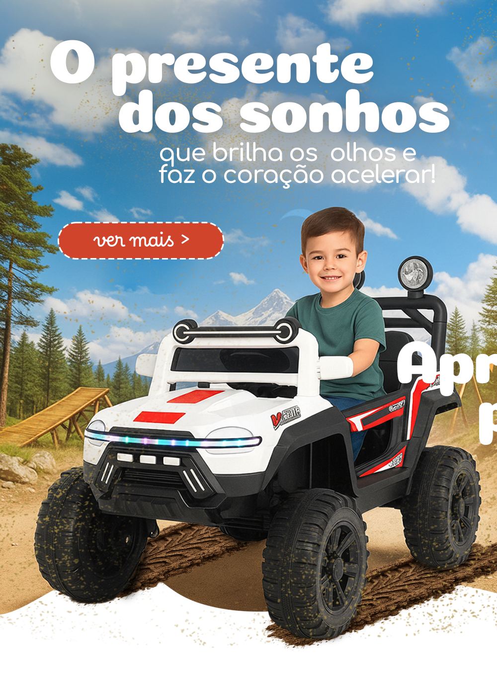 Prepare os pequenos para viver grandes emoções! Nossos carrinhos elétricos off-road combinam potência, segurança e diversão em cada trajeto perfeitos para quem adora acelerar a imaginação.